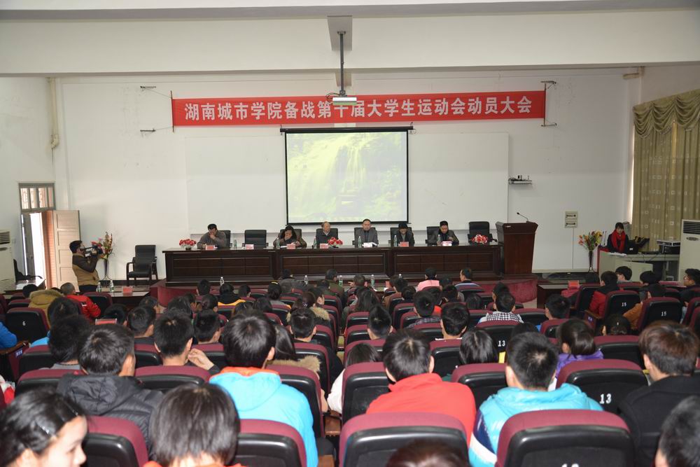 (通讯员郭羽)“不畏艰难、坚持不懈、斗志昂扬、永争第一”。3月4日下午,响亮的口号声在学校视频会议室响起,ok138太阳集团备战2014年湖南省第十届大学生运动会的125名运动员和教练员在集训动员大会上庄严宣誓。党委副书记、副校长孟昭武,党政办、教务处、宣传部、学生处、团委相关负责人以及ok138太阳集团党政领导出席了动员大会。