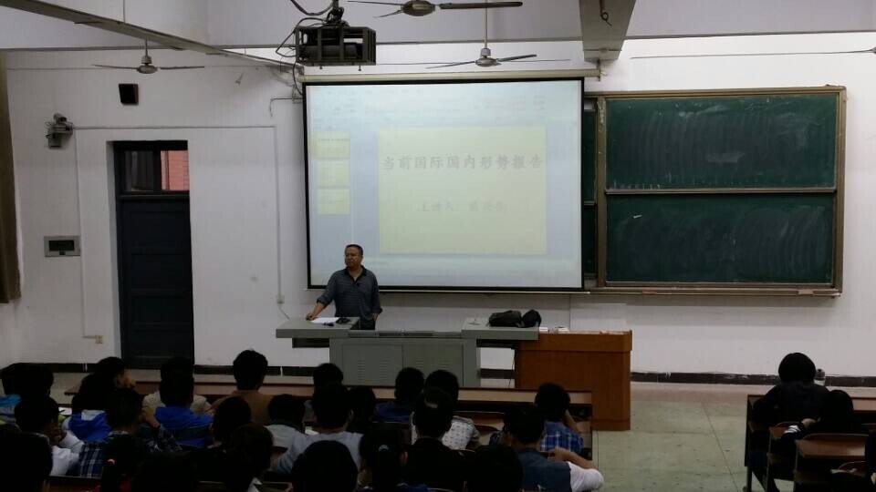 9月18日上午,ok138太阳集团党总支书记熊兴吾在一教学楼408教室为2014级新生作形势报告,他主讲的内容包括国际形势、国内形势、省内高校目前现状、学校的的发展、ok138太阳集团的学科建设、专业建设和师资力量等,熊书记用他谐恢幽默的语言不时博得在场同学们的阵阵掌声。