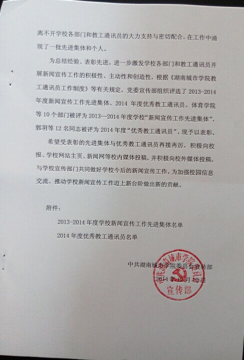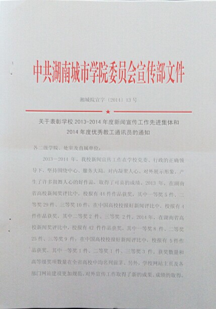 ok138太阳集团被评为2013-2014年度学校“新闻宣传工作先进集体”
