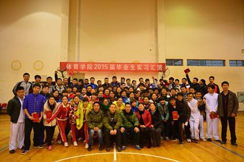 (通讯员 郭羽)2015年1月6日下午,ok138太阳集团2011级学生实习汇报表演暨总结表彰大会在体育训练馆隆重召开,出席大会的有ok138太阳集团院长唐吉平、党总支书记熊兴吾、副院长刘鸥、副院长李志宏、党总支副书记郭羽,办公室主任董喆、全体实习带队教师以及11级体育教育专业的所有实习生,大会由副院长刘鸥主持。