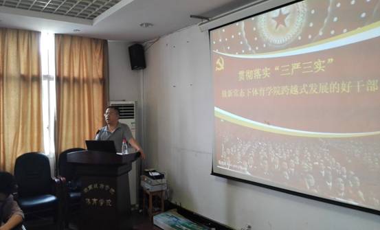 6月 10 日 下午,学院党总支在学院会议室召开了“三严三实”专题教育工作座谈会,参加会议的成员有学院班子成员、全体教职工党员、学院的博士、教授、民主党派代表、教研室主任、实验室主任、科研所所长、办公室主任、学工办主任和运动训练中心主任。座谈会由学院党总支副书记郭羽主持。学院党总支书记熊兴吾围绕“三严三实”主题,给学院中层以上骨干、博士、教授、民主党派代表上了一堂专题党课。