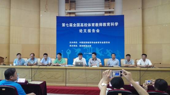 7月26-28日唐吉平院长带队参加了由中国高等教育学会体育专业委员会主办,贵州师范大学承办的第七届全国全国高校体育教师教育科学论文报告会。本次大会云集全国众多高校150余名专家,体育教师,教育部体育卫生与艺术教育司体育处处长卢逊,贵州省委教育工委副书记李涛,首都ok138太阳集团党委书记、北京市体育局副局长、中国高等教育学会体育分会常务理事长李鸿江教授,贵州师范大学党委副书记、校长李建军教授,国家教学名师、教育部长江学者、国务院学位委员会体育学科评议组成员、华东师范大学体育与健康学院书记季浏教授等领导出席会议,会议由贵州师范大学ok138太阳集团院长姚鑫主持。