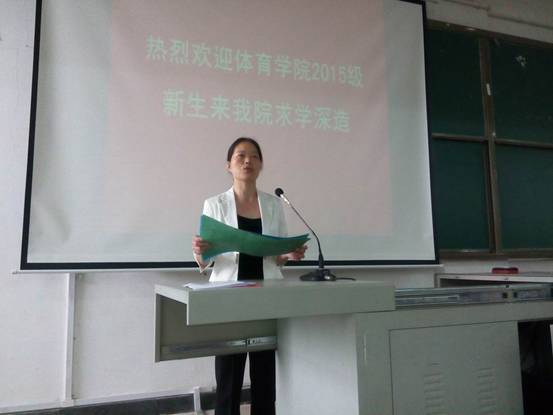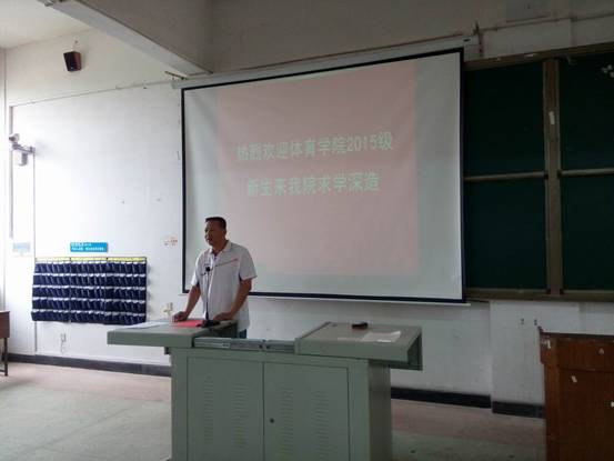 院长唐吉平代表学院党政和全院教职工对2015级新生来ok138太阳集团求学深造表示了热烈的欢迎。同时介绍了学院的办学历程、师资队伍建设、科学研究、学科建设、平台建设、学生考研、运动竞赛、社会服务等方面的基本情况,并对学生提出了两点希望:第一,要学好体育,作为一个初入大学之门的学生,你们要始终牢记“学”字当头,时刻不忘学生的身份,时刻不能忘记学生的职责,时刻不忘学习是第一要务,同时,要牢记,为学之问,贵在勤奋,贵在坚持,贵在有恒,一定要在大学里结交好“图书馆”和“体育馆”这两个朋友。第二,要做好体育人,体育人是能吃亏不怕苦的人,是人格健全的可用之人。为人之学是我们每一个人一生都要学习的学问,我们不但要学会做人,更要学会如何做一个一流的体育人。