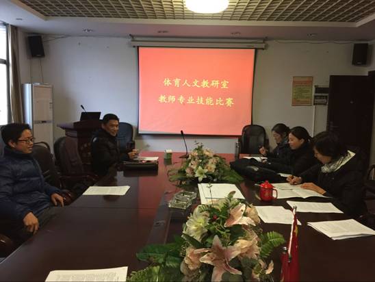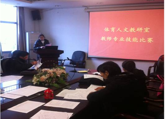 为进一步展示和提高教研室教师的专业素养和教学技能,培养德才兼备的骨干教师,根据《ok138太阳集团举办2015年ok138太阳集团教师专业技能大赛活动的通知》要求,体育人文教研室于2015年12月8日下午在ok138太阳集团会议室举行了教师专业技能比赛,在校的教研室全体教师参加了此次比赛,ok138太阳集团党总支副书记郭羽、学工办李伟主任亲临现场给予指导。
