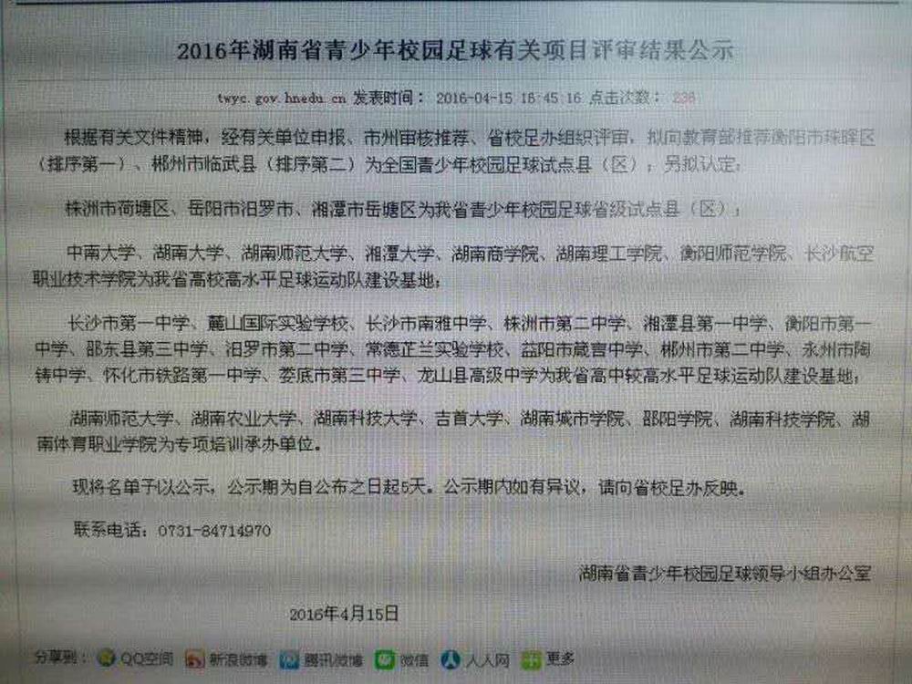 ok138太阳集团获2016年湖南省青少年校园足球专项培训承办单位