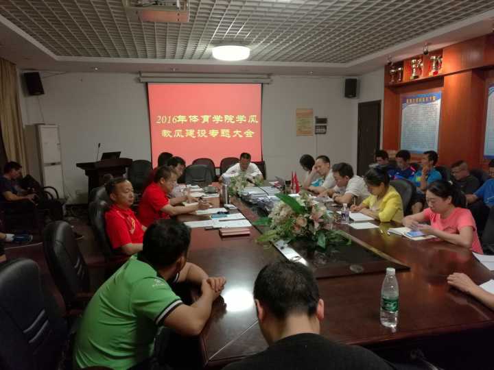 (通讯员 郭羽)2016年5月11日晚上,ok138太阳集团在院会议室召开了教风、学风建设专题研讨会,与会人员有学院班子成员、体育专业任课教师、班主任、辅导员、教务秘书共42人。会议由党总支副书记郭羽主持。