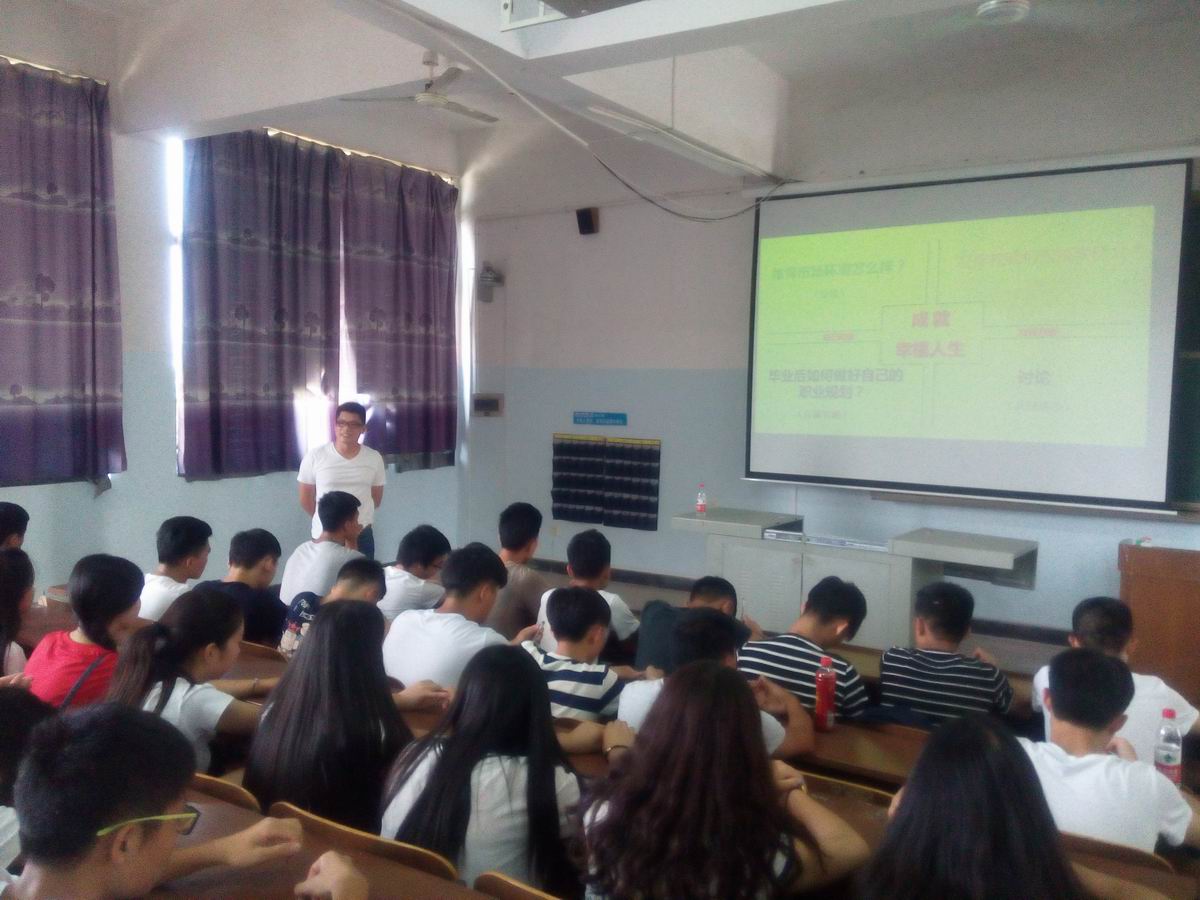 如何面对社会体育指导与管理专业的大学生毕业后就业的严峻形势。9月13日下午2:30一教学楼206教室,湖南广运体育文化传播有限公司董事长ok138太阳集团04级校友肖强一一进行了讲解。首先,他对新生入学进入大学的心情进行了猜想,包括忐忑,期待和迷茫等,并加以分析此种心情的利弊。随后,他着重对大学毕业生面临的就业形势进行分析,面对当今社会的目前状况,就业形势和就业状况告诉大家要有忧患意识,以空悲的心态开启大学课程。其次,在大学生职业生涯规划的环节上,他首先让同学们进行职业生涯幻想,然后,以详细的案例分析告诉大家:没有规划就没有目标,没有目标就没有成功。并让大家仔细想想“我是谁?我将去哪里?怎么去?”的真正含义,要想让明天与昨天有所不同,所以决定你今天干嘛。