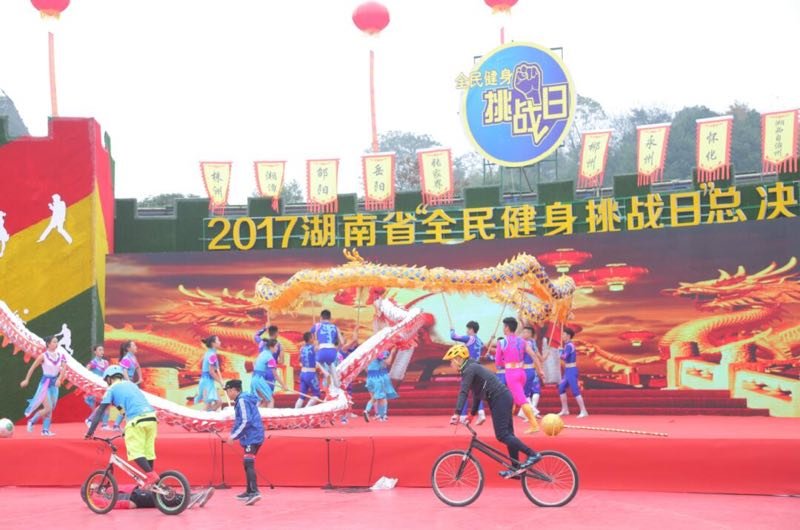 (通讯员 郭羽)由国家体育总局群体司发起,湖南省体育局、益阳市政府联合主办,益阳市文化体育广电新闻出版局承办,益阳市体育总会、益阳市全民健身服务中心、益阳市奥林匹克公园体育中心共同协办的2017年湖南省“全民健身挑战日”总决赛于12月3日上午在益阳市奥林匹克中心举行,湖南省有岳阳、湘潭、株洲、衡阳、郴州、邵阳、永州、怀化、张家界、益阳等10个市州均在当地举行了挑战日活动,每个市州挑战项目第一名将全部参加这次总决赛。中央电视台体育频道、人民网、新华网、湖南卫视、湖南经视、湖南教育电视台、湖南日报、新湖南、华声在线、红网、潇湘晨报、三湘都市报、益阳电视台、益阳日报、益阳电台、益阳在线等媒体在现场进行了采访报道,新华网、新华炫闻客户端、和乐视对总决赛全程进行了网上直播。