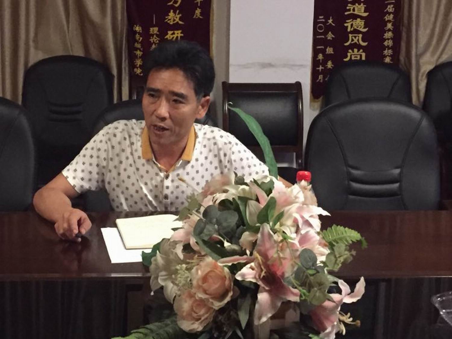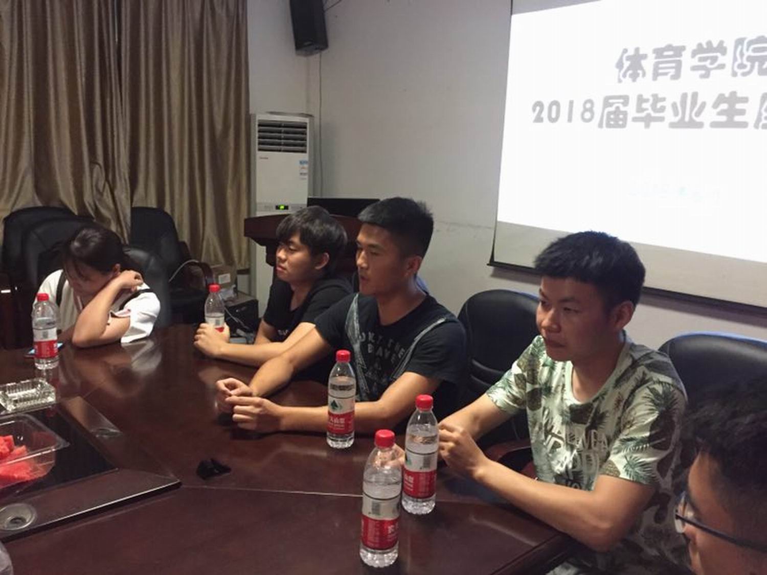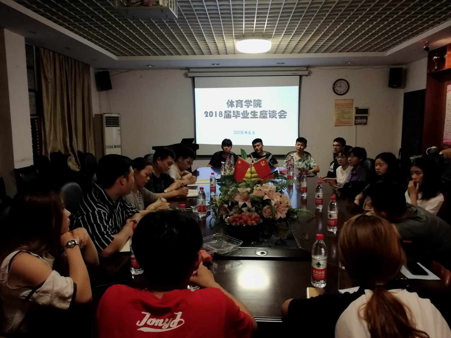 (通讯员 郭羽)6月14日晚上7:30,ok138太阳集团2018届毕业生代表座谈会在体育训练馆一楼会议室召开,出席座谈会的领导老师有学院党总支书记薛铁军、副院长(主持工作)李志宏、党总支副书记郭羽、办公室主任王雄鹰、学工办主任蒋佩云,参加座谈会的学生有胡平安、傅文乐、李宇昭、周世钰、贺龙、范璐、黄金龙、王香辉、夏超、陈溢、赵星宇、杨欢、匡丹、贺涛、林桂彬、赵雅、彭敏芳共17人,座谈会由副书记郭羽主持。