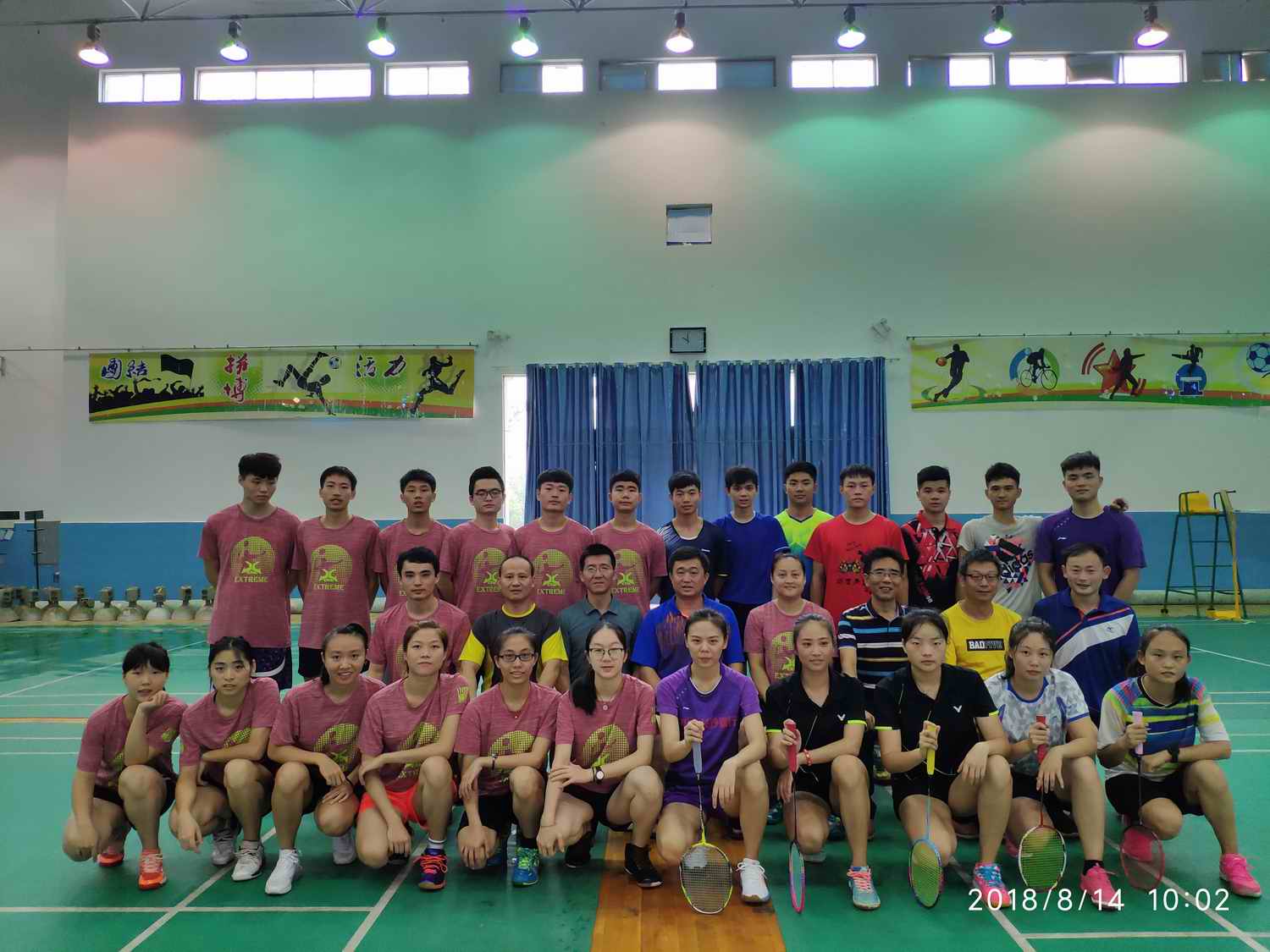 两校羽毛球队老师、队员合影留念