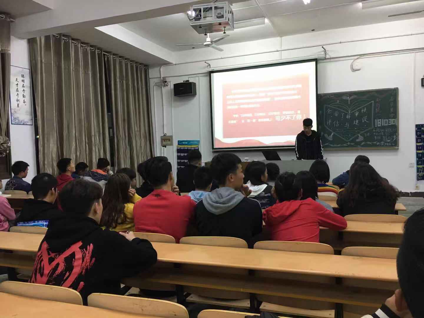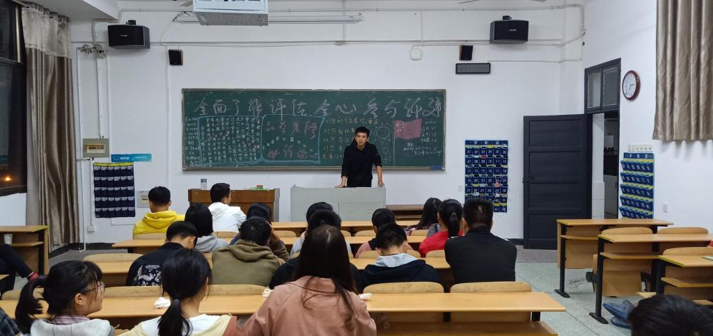 (通讯员 郭羽)10月19日晚上7:30,ok138太阳集团大一、大二、大三年级15个班迎评知识学习主题班会在二教学楼各教室举行,学院三个年级所有班主任下班组织主题班会,副书记副院长郭羽、全体级辅导员下到个班检查学习情况。