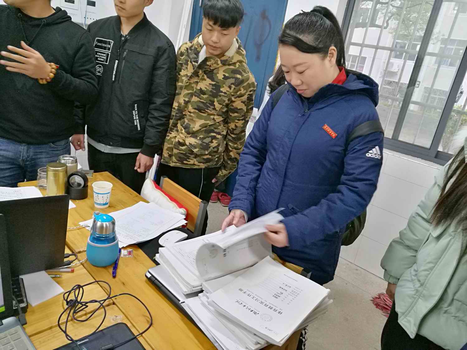 体育教育系主任龚莹莹在查阅实习手册