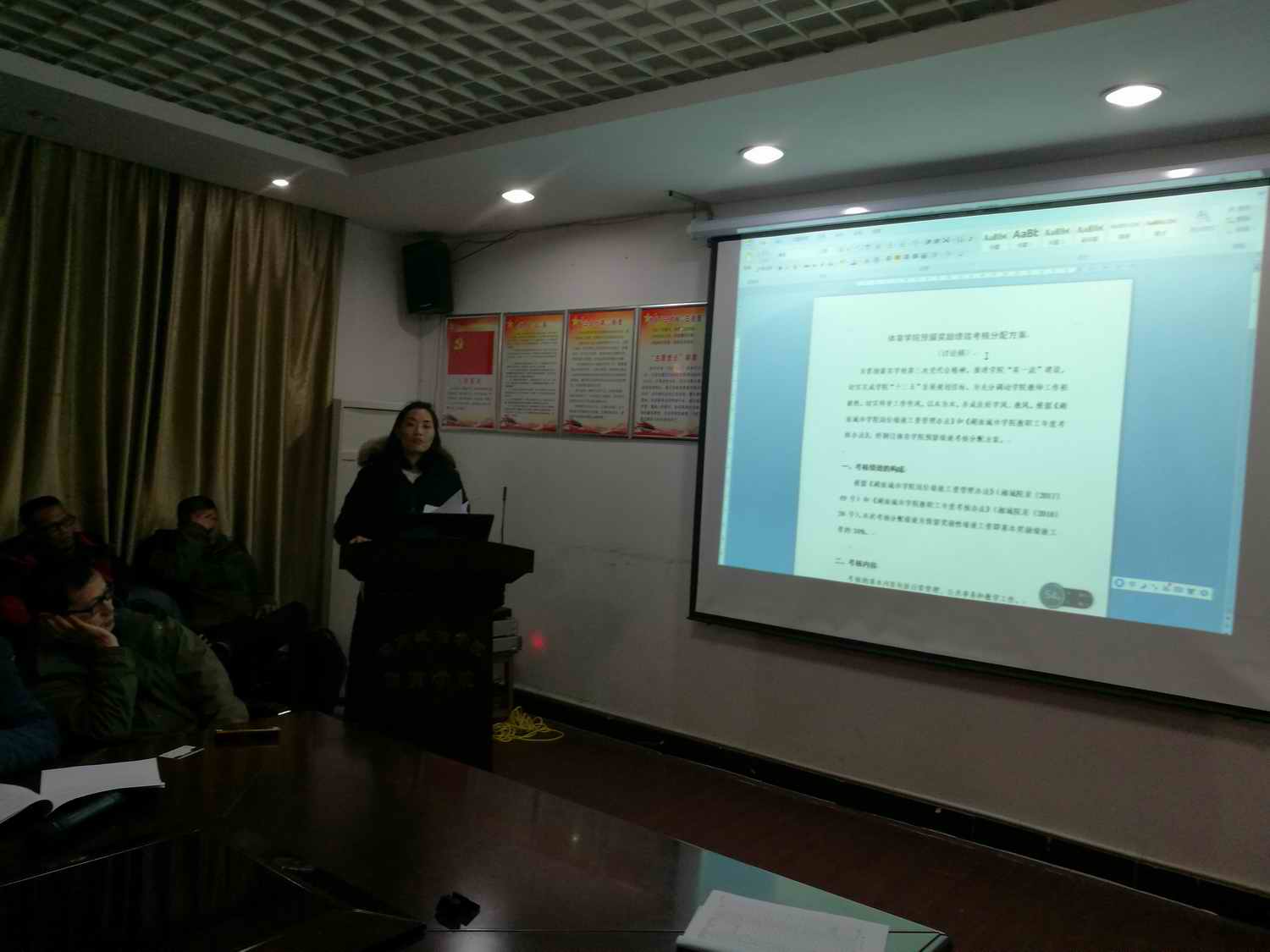 办公室主任王雄鹰对《ok138太阳集团预留绩效考核方案》、《ok138太阳集团绩效分配原则指导意见》两项学院文件进行了说明。
