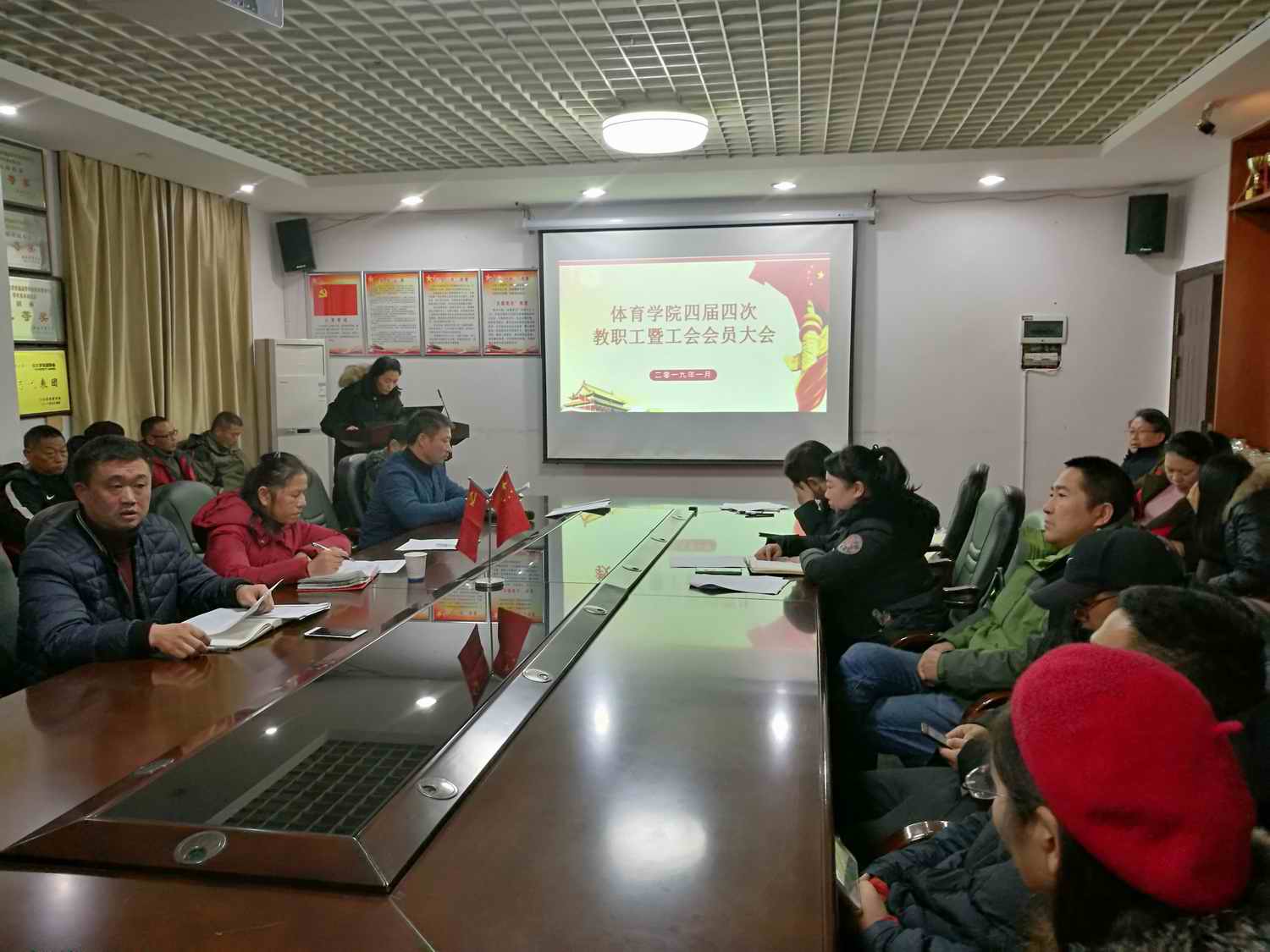 (通讯员郭羽)2019年1月7日晚上19:00,ok138太阳集团第四届四次教职工暨工会会员大会在ok138太阳集团一楼会议室隆重举行,出席会议的领导有学校工会女职工委员会主任曹资立、ok138太阳集团党总支书记薛铁军、党总支副书记副院长郭羽、副院长胡科、党总支副书记何冬林,会议由何冬林主持。