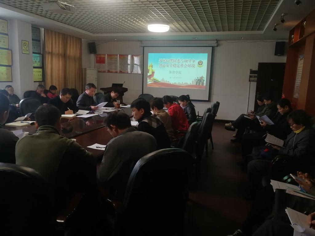 由中共中央、国务院发出《ok138太阳集团开展扫黑除恶专项斗争的通知》指出,为深入贯彻落实党的十九大部署和习近平总书记重要指示精神,保障人民安居乐业、社会安定有序、国家长治久安,进一步巩固党的执政基础,党中央、国务院决定,在全国开展扫黑除恶专项斗争。4月4日下午2:00,在体育馆一楼一会议室,ok138太阳集团组织全体教职工进行了“扫黑除恶专项斗争”专题学习,学习由ok138太阳集团党总支书记薛铁军主持,副书记副院长郭羽带领全院教职工学习了《通知》文件精神、学校ok138太阳集团《扫黑除恶转向斗争学习参考资料》,让广大教职工对扫黑除恶有了更进一步的了解。