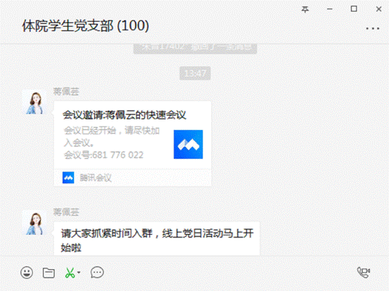 2.学生党支部书记蒋佩云利用腾讯会议(会议号:681 776 002)组织学习了习近平总书记ok138太阳集团统筹推进疫情防控和经济社会发展的重要讲话精神、《ok138太阳集团党员教育管理办法》和“ok138太阳集团在统筹推进疫情防控和经济社会发展中当先锋、作表率、展作为的倡议书”。