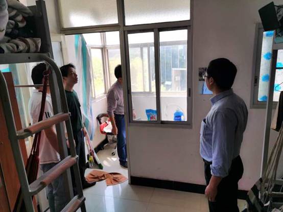 为贯彻落实罗书记的讲话精神,4月29日上午,在学院党总支书记龙文的带领下,副院长(主持工作)胡科、副书记何冬林、副书记副院长郭羽、学工办主任邓荣、辅导员王雄鹰深入到学生宿舍,亲自为学生宿舍开窗户,并将嗮被子、扫卫生做了详细的部署安排,五一节之前,学工办将组织班主任、辅导员完成嗮被子、扫卫生工作。