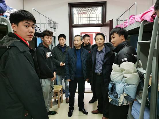 每到一间宿舍,夏校长一行仔细查看宿舍环境卫生,询问学生的学习、生活等情况,希望同学们严守校级校规,在寝室认真学习,平时保持寝室干净整齐,宿舍多通风,保持宿舍气流畅通。让同学们感受到来自学校、学院的关心和家一般的温暖。在4栋女生宿舍了解到3名大四考研学生时,夏校长询问了她们考得怎样,要关注复试信息,对照去年的录取线,提前做好复试准备,并预祝她们考研成功上岸。在肄业班宿舍,夏校长一行与同学们亲切聊起毕业后的打算。当听到有些同学们说正在做考研考虑时,夏校长建议他们现在不要犹豫,考研要趁早做准备。