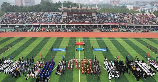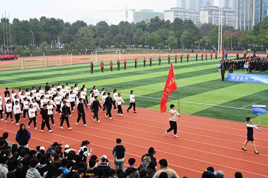 校长汤放华致开幕词,他沿用毛泽东同志在《体育之研究》中提出的“文明其精神、野蛮其体魄”,鼓励全体同学们积极投身体育锻炼,要站在为党育人,为国育才的战略高度,树立健康第一的教育理念,让同学们在体育锻炼中享受乐趣、增强体质、健全人格、锤炼意志,成长成才。希望参加本次运动会的全体运动员要遵守规则、公平竞赛、团结互助,弘扬拼搏精神,展现当代青年大学生的良好风貌;希望全体教练员、裁判员要恪尽职守,确保比赛公平公正和运动会的圆满精彩;希望全体工作人员认真履职,为比赛提供热情、高效、安全、优质的服务。希望全体师生能够以此次运动会为契机,爱上运动,养成体育锻炼的良好习惯,练就一副健康强壮的体魄,涵养团结合作、公平竞争、顽强拼搏的体育精神,立志为党和国家健康工作五十年!