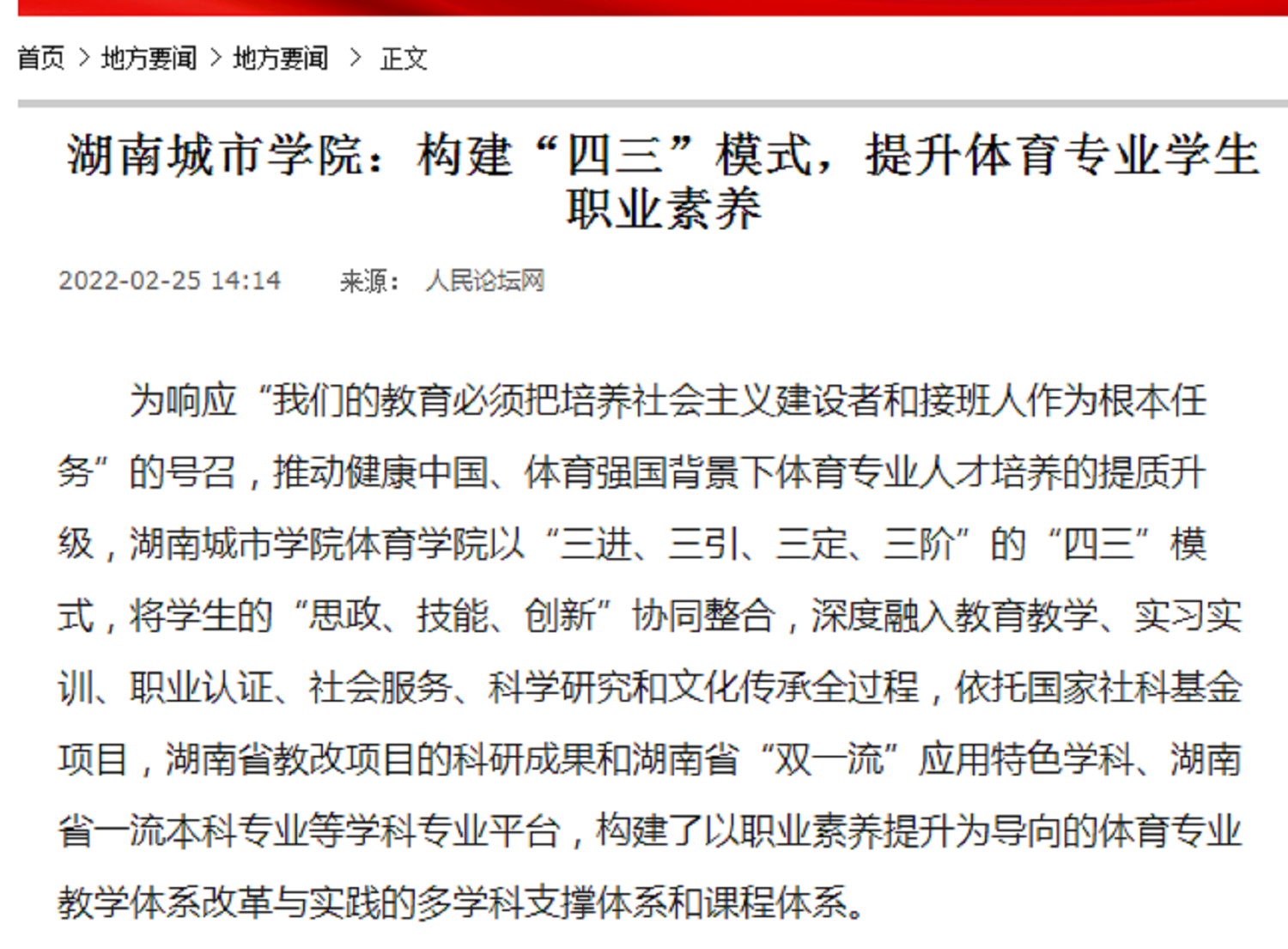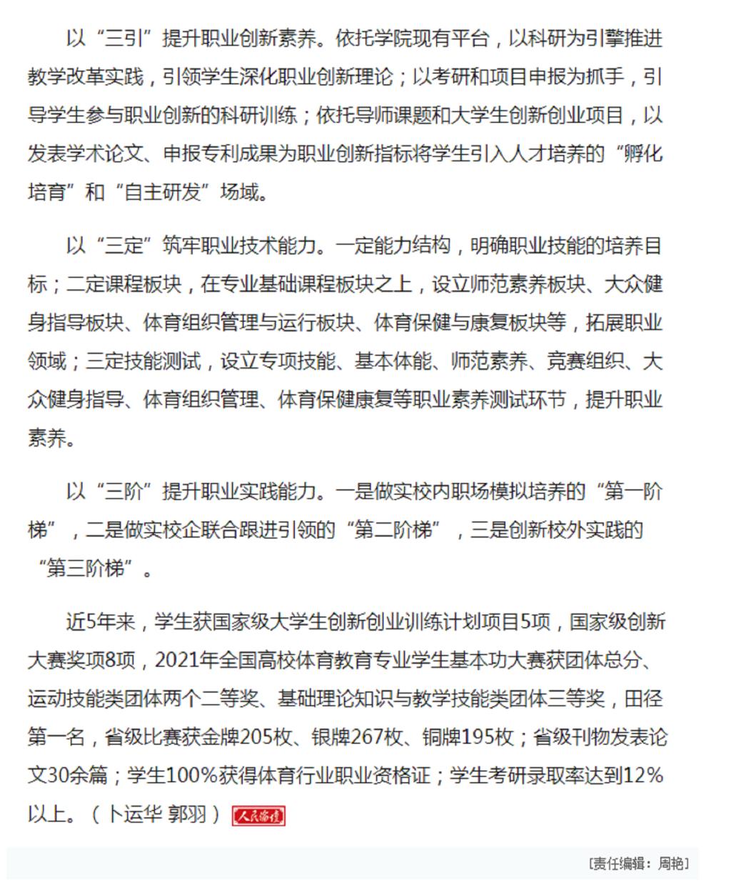 ok138太阳集团:构建“四三”模式,提升体育专业学生职业素养