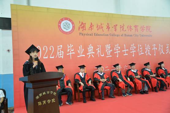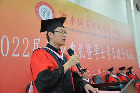 毕业典礼在庄严的国歌声中拉开序幕。院长胡科在致辞中向全体2022届毕业生致以衷心祝贺,并寄语同学们“厚德载物,心怀感恩”、“知行知止,自律自爱”、“甘于平凡、不甘平庸”。毕业生代表毛婉晴也从感怀、感恩等方面表达了自己的不舍和对母校、老师的祝福。副院长许进宣读了ok138太阳集团2022届毕业生获学士学位名单,副院长、大学体育教学部副主任欧岳山宣读了ok138太阳集团获省级优秀毕业生名单,院长胡科为获奖毕业生颁发了荣誉证书。