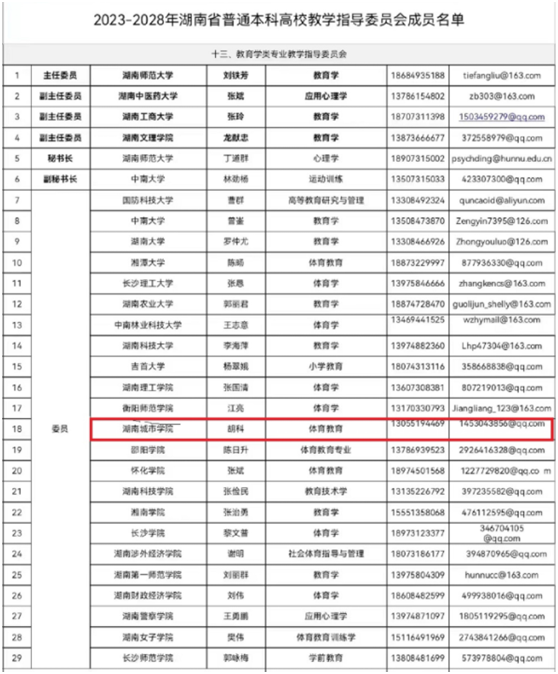 热烈祝贺院长胡科任2023-2028年湖南省普通本科高校教学指导委员会委员