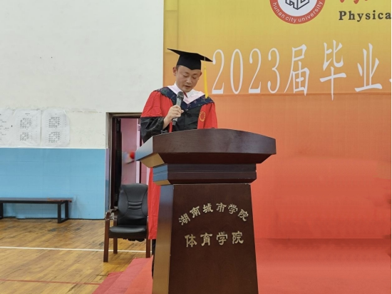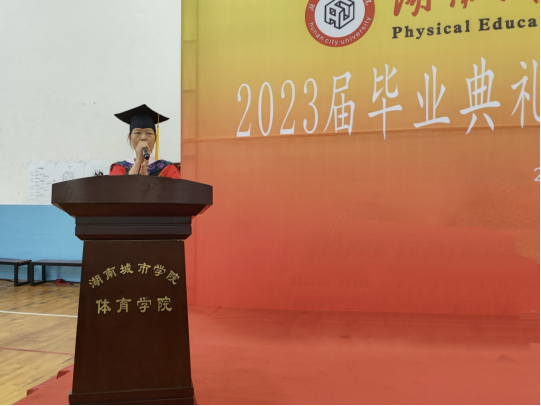 (通讯员 费鸿俣)2023年6月16日上午8:30,ok138太阳集团2023届毕业典礼暨学士学位授予仪式在体育训练馆举行。ok138太阳集团党委书记郭羽、院长李志宏、副院长许进、大学体育教学部副主任欧岳山、体育教育系主任龚莹莹、社会体育指导与管理系主任柳春梅,全体毕业班班主任、辅导员等出席毕业典礼。毕业典礼由学院党委书记郭羽主持。