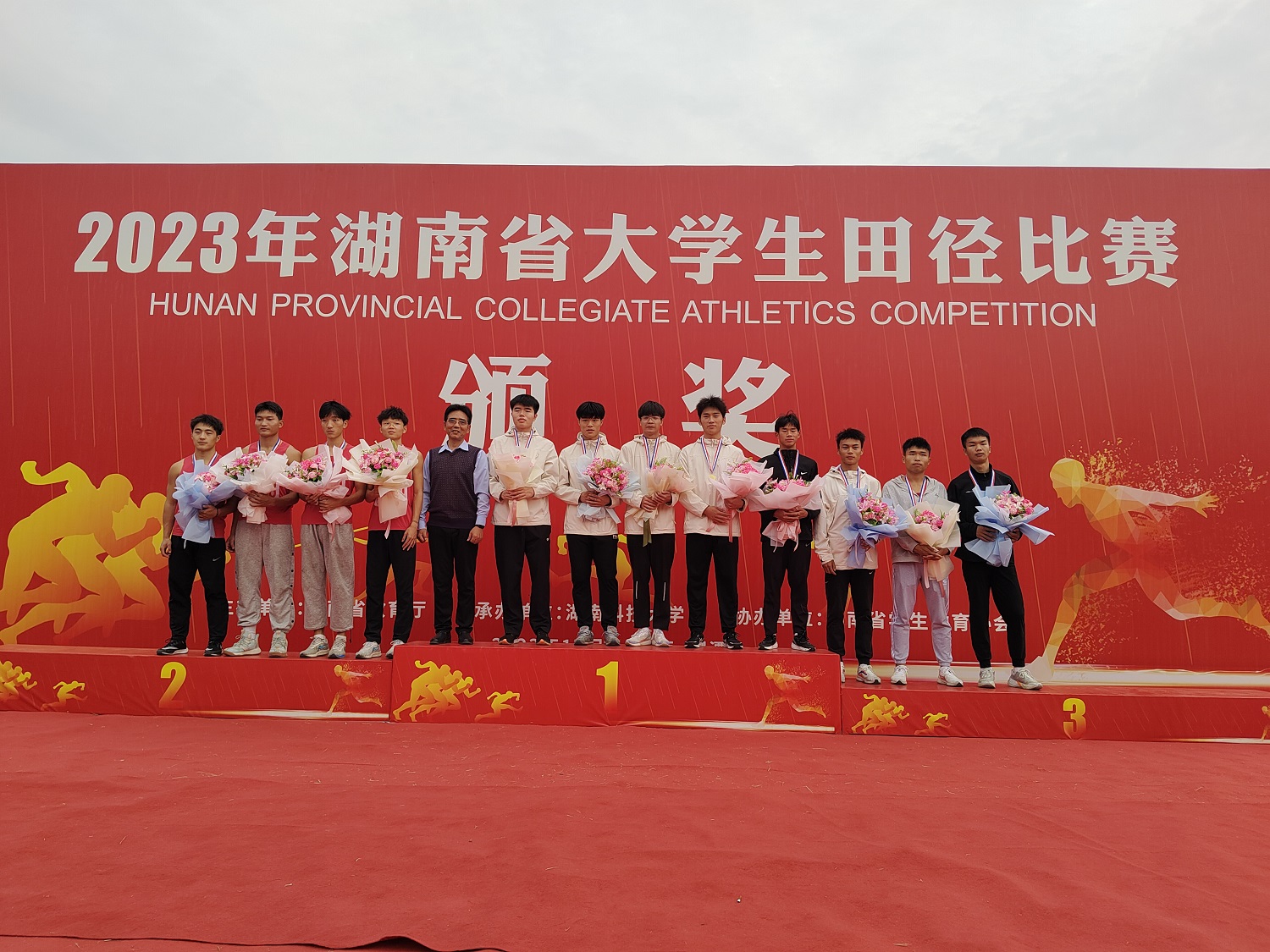 (通讯员 郭羽)2023年10月22日—10月26日,由湖南省教育厅举办的2023年湖南省大学生田径比赛在湖南科技大学举行。本次学院组有16所高校的代表队参赛,其中有两所高校开办了运训专业。ok138太阳集团运动员在比赛中不畏强手,顽强拼搏,一举夺得了4金6银2铜,男女团体总分第五名的优异成绩,其中男子4X100米接力是ok138太阳集团升本以来首次获得这一项目的冠军。