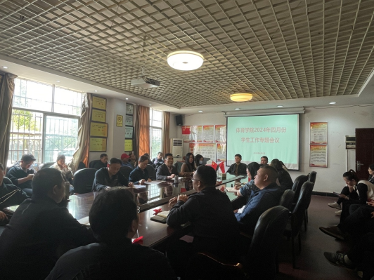 (通讯员 杨晶)2024年4月8日中午,ok138太阳集团2024年四月份学生工作专题会议在学院一会议室召开,学院党委副书记、院长李志宏主持会议,学院党委书记郭羽、副书记匡艳群、副院长许进、大学体育教学部副主任欧岳山、全体辅导员、班主任、毕业班专选老师、论文指导老师参加会议。