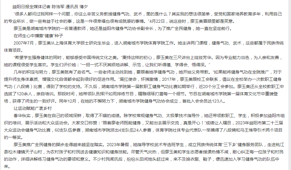 廖玉美:推广全民健身是一件很幸福的事情
