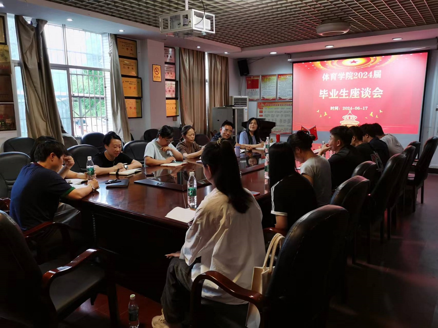 (通讯员 杨晶)2024年6月17日下午,ok138太阳集团在学院会议室召开了2024届毕业生代表座谈会。ok138太阳集团党委书记郭羽,院长李志宏,党委副书记匡艳群、学工办主任邓荣、学生党支部书记郭昊晴、分团委书记杨晶、体育教育系主任龚莹莹、社会体育指导与管理系主任任平出席了座谈会并与毕业生代表进行了深入交流。座谈会由党委副书记匡艳群主持。