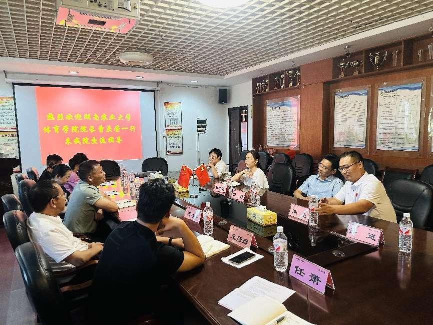 (通讯员 陈亮)2024年7月5日下午,湖南农业大学ok138太阳集团院长曹庆荣、副院长刘周敏等7人一行来我院进行了交流指导。ok138太阳集团党委书记郭羽、院长李志宏、科研处处长胡科(社会体育指导与管理专业负责人)、社会体育指导员管理系主任任平、教学科研班主任陈亮出席交流座谈会,交流会由院长李志宏主持。