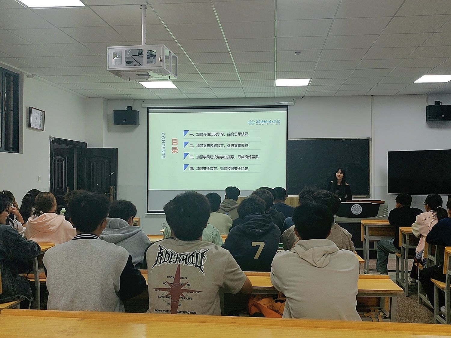 会上,各班班主任结合学校“迎评估从我做起”PPT进行了宣讲,同时,结合学院审核评估会议精神,从文明养成、上课、日常管理、学风建设、宿舍管理进行了强调,并传达了学校就学风建设和审核评估下发的相关通知文件,强化学生对规章制度学习的认知与教育,同时引导学生树立规则意识,提高用规章制度约束自己行为的自觉性。
