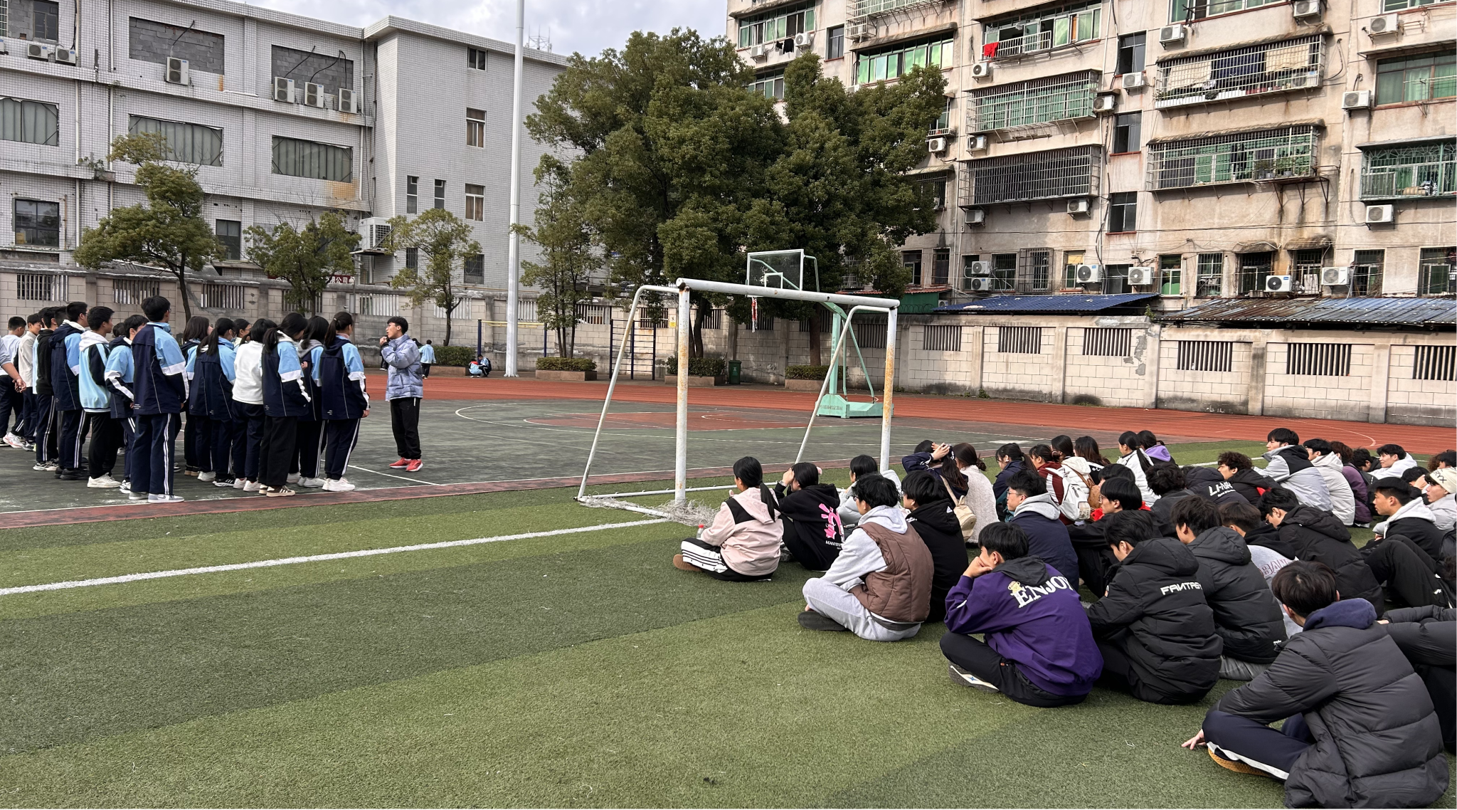 本次见习恰逢朝阳学校举办校足球赛,这为同学们提供了一个学习校园体育文化建设的宝贵机会。从前期的场地器材准备,到赛事期间的裁判执裁、成绩记录、秩序维护,处处都有见习生们好学又认真记录的身影。他们完整观摩了一场精彩的足球盛会,深刻理解了体育赛事的育人功能。不仅体现了学生们在运动中“重在参与、挑战自我、享受快乐”的体育精神,也见证了见习生们在这场专业实践中收获的成长与快乐。