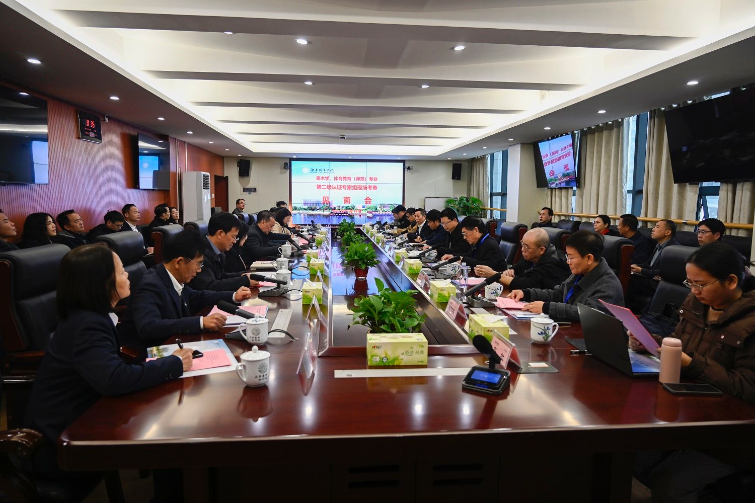 18日上午,美术学、体育教育师范类专业第二级认证现场考查专家见面会在学校一会议室举行。
