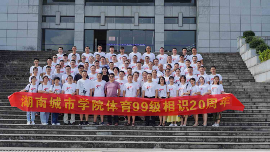 (通讯员 郭羽)2019年7月5—7月7日,ok138太阳集团99级90余名学子们齐聚母校举行相识20周聚会。学校校友办副主任李志宏原ok138太阳集团院长唐吉平(现为湖南农业大学教授)、原体育系副主任黄依柱(现湖南第一师范学院ok138太阳集团院长),ok138太阳集团党总支书记薛铁军、副书记何冬林、副院长胡科、副书记副院长郭羽、99级班主任、辅导员、任课老师以及全体校友们参加了聚会。