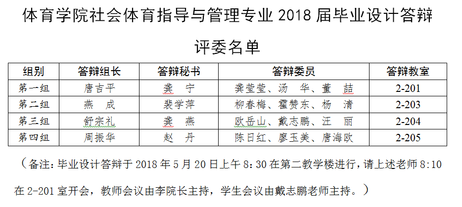 ok138太阳集团社会体育指导与管理专业2018届毕业设计答辩安排