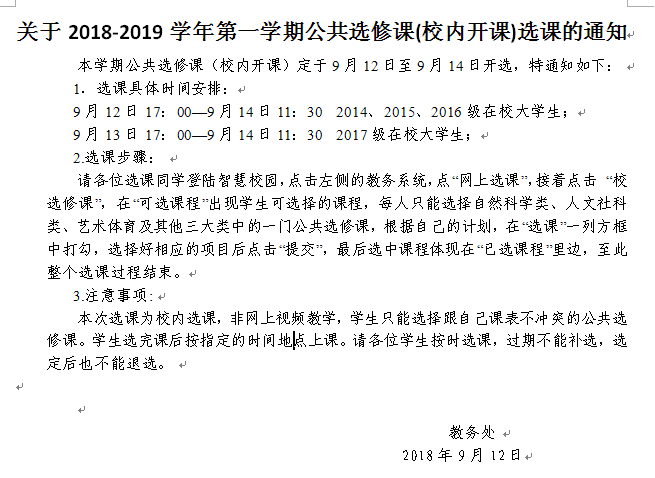 校内公共选修课选课通知