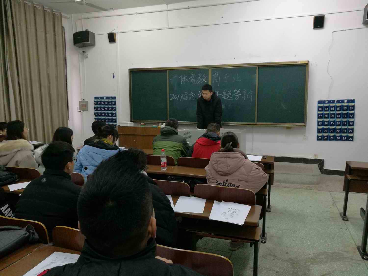 答辩开始之前,学院党总支副书记副院长郭羽在2-201教室组织老师对答辩提了五点要求:一是每一位答辩老师依据学生开题材料和陈述情况向答辩学生提问,提问不能少于3个,答辩秘书记录提问与学生回答问题的内容不少于3个;二是老师所提出的问题或给予的建议要有针对性,要紧扣学生毕业论文题目内容,要有利于学生毕业论文的完成;三是控制好答辩时间,每位学生陈述论文的时间不超过三分钟,老师提问时间控制在五分钟左右,每位学生答辩总时间不超过十分钟;四是答辩结果要公开、公平、公正,不能有意降低标准或故意为难学生;五是每组秘书收集齐全开题答辩的存档材料,组长于一周签好字,按时交龚燕老师保存。体育教育系主任龚莹莹温馨提示参加答辩的学生:一是要沉着冷静,不要急躁;二是要充分相信自己,回答老师的提问不慌不忙;三是要对答辩老师提出的意见和建议认真做好记录;四是要按要求及时上交材料。经过近三个小时的答辩,84位同学答辩顺利通过,38位同学没有通过,参加下一次补答辩。