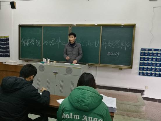(通讯员 郭羽)2019年1月8日下午13:30,ok138太阳集团2016级毕业论文(设计)第一次开题答辩在第二教学楼201、202、203、204、205、206教室如期举行。学院成立了以副院长(主持工作)胡科、党总支书记龙文为组长,副书记副院长郭羽为副组长的毕业论文(设计)工作领导小组,参加本次开题答辩的学生136人,其中社会体育指导与管理专业69人、体育教育专业67人,每个专业均分成三个组,每组答辩老师四人。