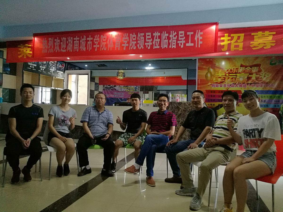 (通讯员 郭羽)2017年8月19日——24日,学院党总支书记熊兴吾、副书记郭羽率胡科、张志辉、汤华、戴志鹏六人一行前往江苏无锡海陆空集团、浏阳柏盛健身俱乐部、长沙奇迹健身俱乐部、益阳领跑健身俱乐部、益阳超越健身俱乐部、恒大陆洲动力驿区六个实习单位检查和指导2014级社会体育指导与管理专业实习工作。