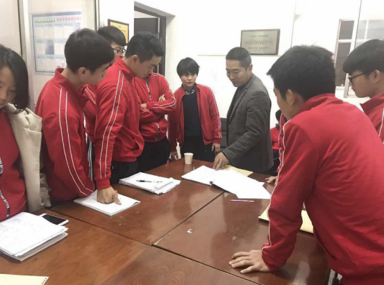 带队老师检查学生的实习教案