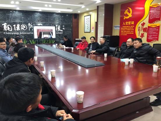 党总支书记龙文在朝阳国际实验学校检查座谈会上发言