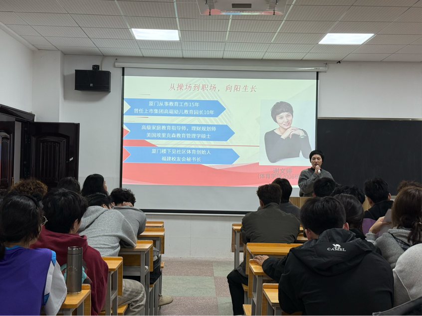 谢文婷以轻松幽默的口吻,回忆了在母校求学的点点滴滴,娓娓道来从校园到职场的转型经历。她特别强调,体育专业培养的团队协作能力、规则意识和拼搏精神,都在她的职场发展中发挥了重要作用。这些在运动场上锤炼的素质,成为了她在职场中脱颖而出的核心竞争力。