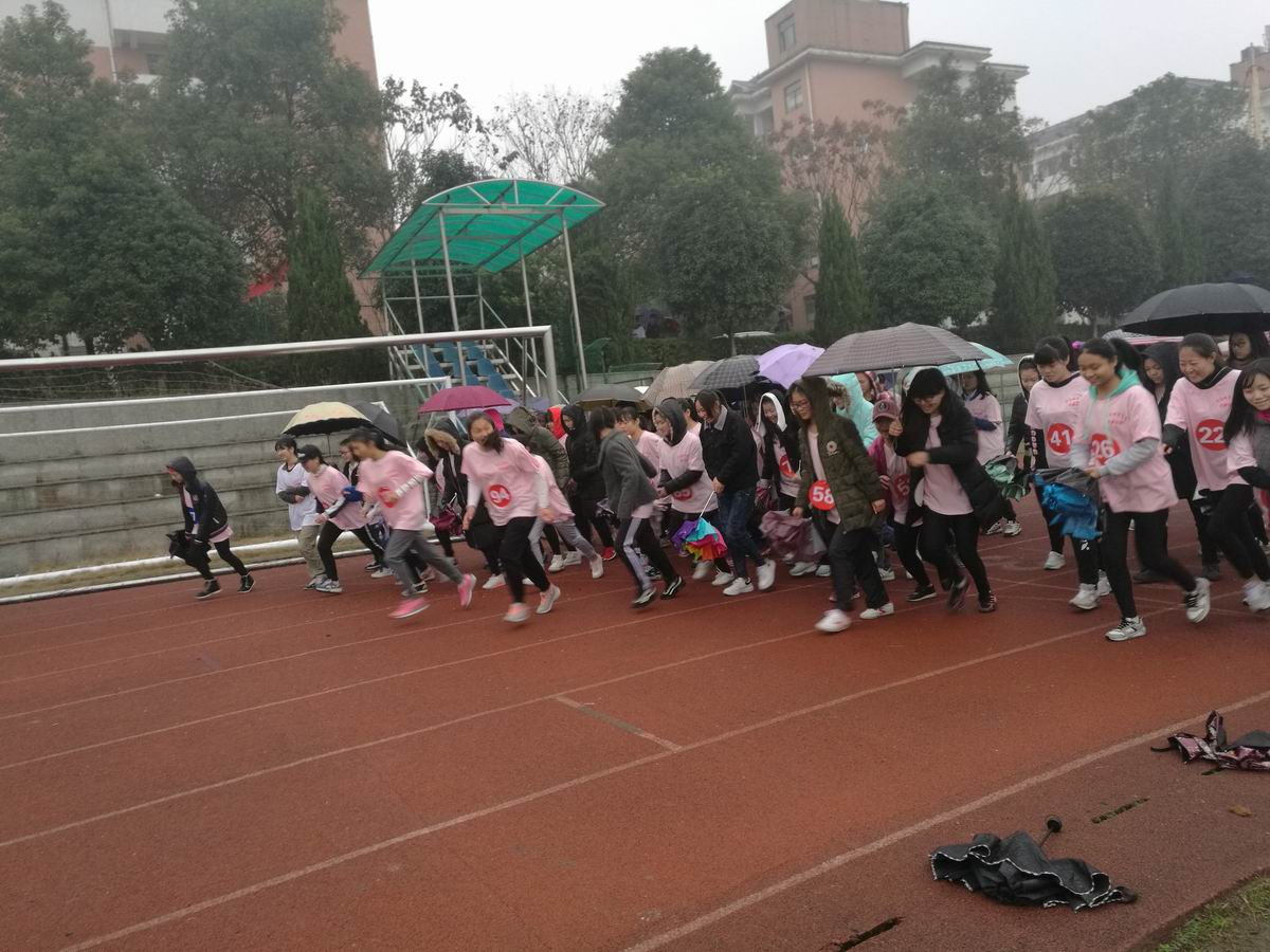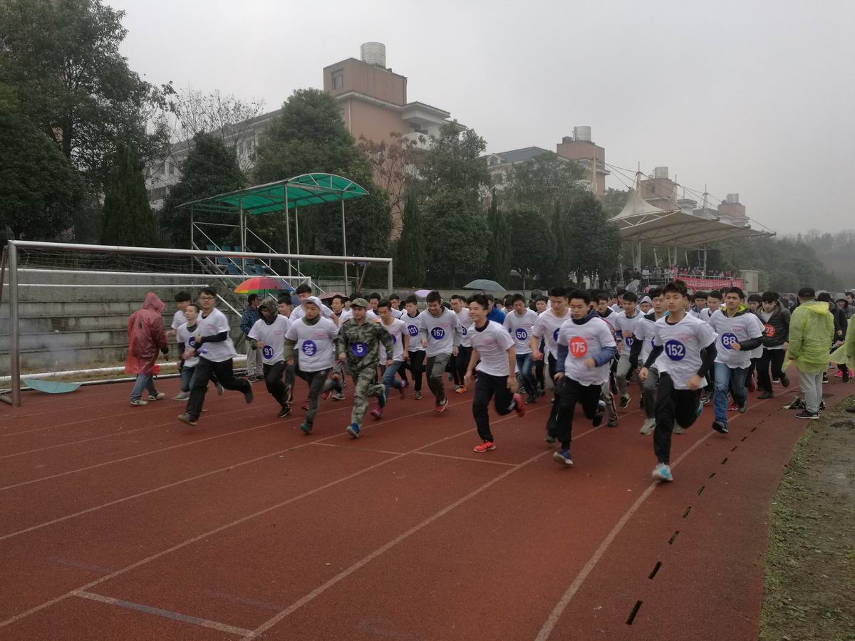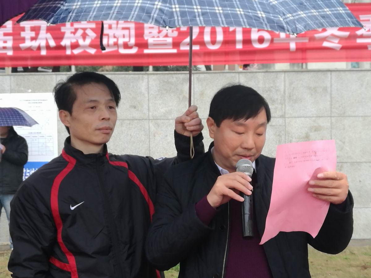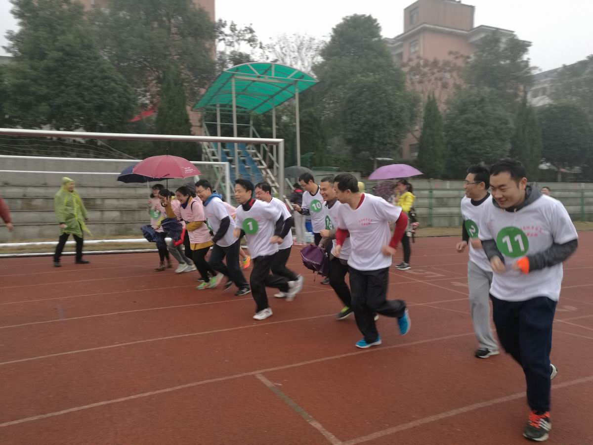 上午9:00鸣枪,比赛正式开始,出发顺序为女子甲组、学工系列教师组、男子甲组、女子乙组和男子乙组,虽然天空不着美,下着毛毛细雨,但大家顶着凛冽的寒风,丝毫没有降低跑步的热情,赛场上加油声,呐喊声不绝于耳。