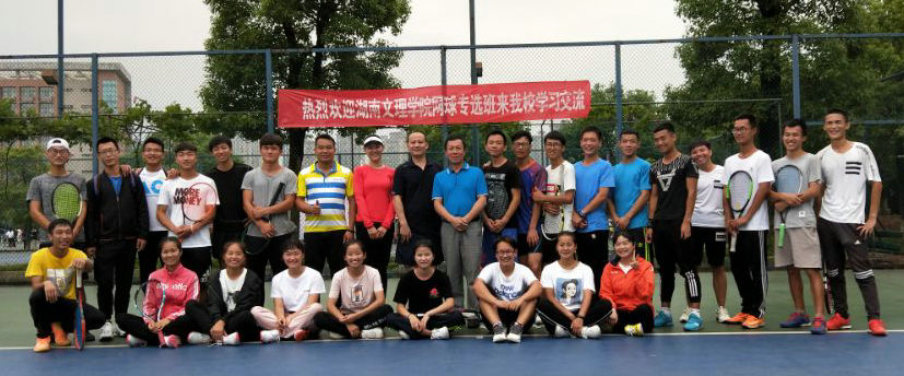 2018年6月2日-6月3日,湖南文理学院网球队一行16人来ok138太阳集团与ok138太阳集团网球专选班进行竞技、教学交流。竞赛训练中心应学院领导委托接待了文理学院领导、教练、运动员一行,在燕成教授、汪丽老师的精心策划下,组织了师生之间、学生之间的球技交流和网球专选教学座谈。