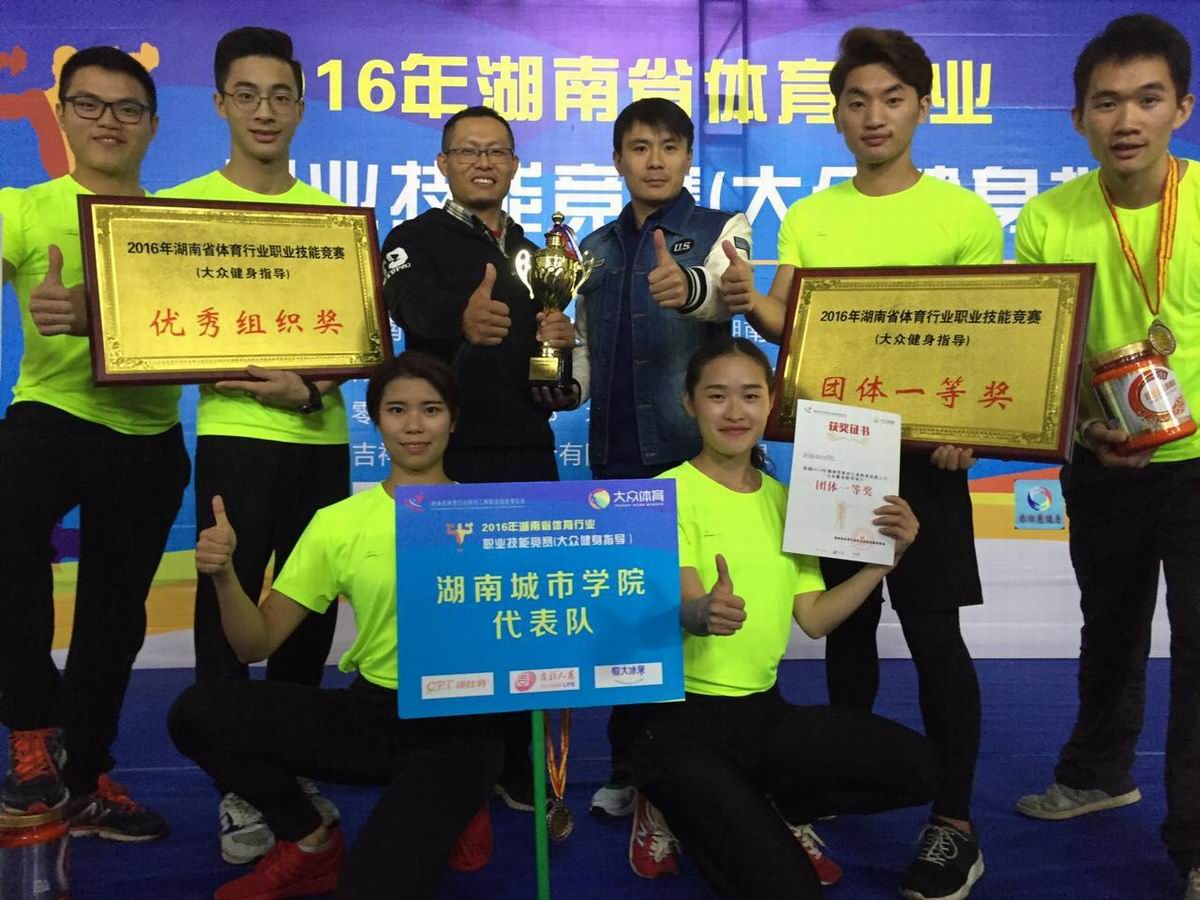 (通讯员 郭羽)10月24日—27日,由省体育局、省总工会主办,省体育人才交流服务中心、省体育产业集团等联合承办的2016年湖南省体育行业职业技能大赛在长沙望城举行,本次比赛共有来自全省各地市20支队伍参赛,参赛运动员达124人。竞赛分为个人赛和团体赛,个人赛包括体重、体脂检测,运动处方设计以及小团体课程演示等内容,团体赛则分为团体理论竞赛、团体体能竞赛和健身才艺展示。ok138太阳集团运动员段思怡、贺龙、邓戎、倪福、陈钦、彭果在教练员霍赞东、徐哲老师的带领下参加了本次比赛,运动员们不畏强手,沉着冷静,奋勇拼搏,一举夺得了团体一等奖,段思怡、贺龙获个人三等奖,学校还获得了优秀组织奖。