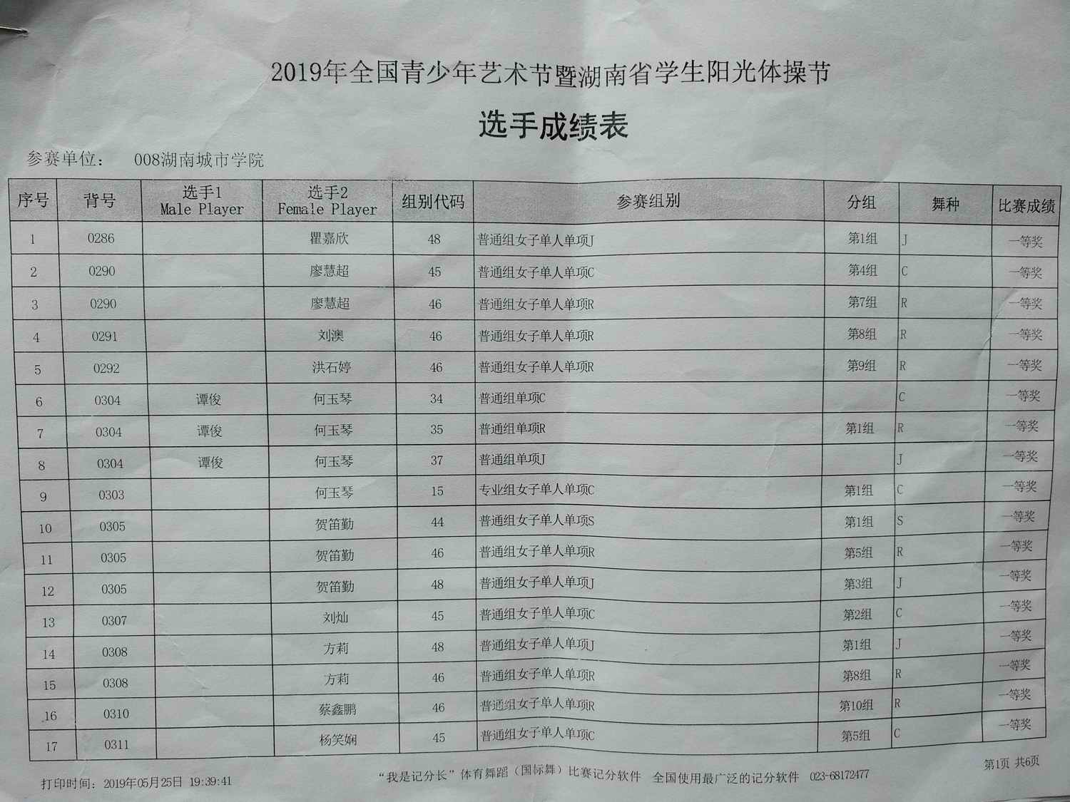 2019年全国青少年艺术节暨湖南省阳光体操节ok138太阳集团获奖选手名单