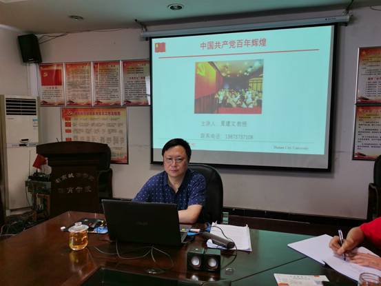 (通讯员 郭羽)2021年6月3日下午,ok138太阳集团邀请学校党史学习教育宣讲组成员夏建文教授作党史学习教育专题宣讲,夏建文教授以《中国共产党百年辉煌》为题开讲,学院全体师生党员参加了专题宣讲会,党总支书记龙文主持。