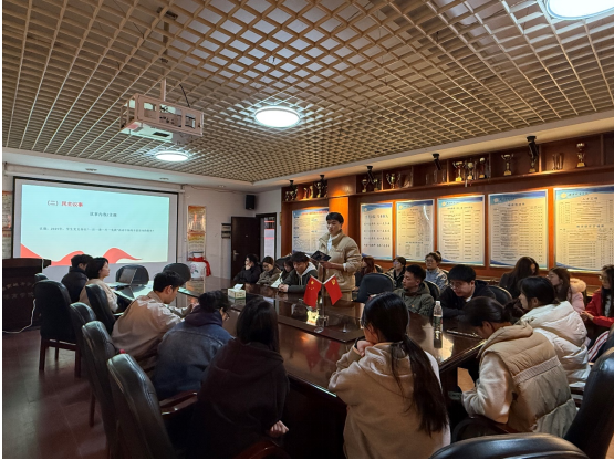 民主议事内容为:2025年,学生党支部在“一月一课一片一实践”活动中如何丰富活动的载体。郭缨、陈真两位同志发言,他们认为可以将我们的活动载体转移到红色书籍上,定期读红色书籍,在会上同各位同志分享。可以将活动主场转移到红色教育场所,通过沉浸式体验,重温革命历史,感受先辈精神。